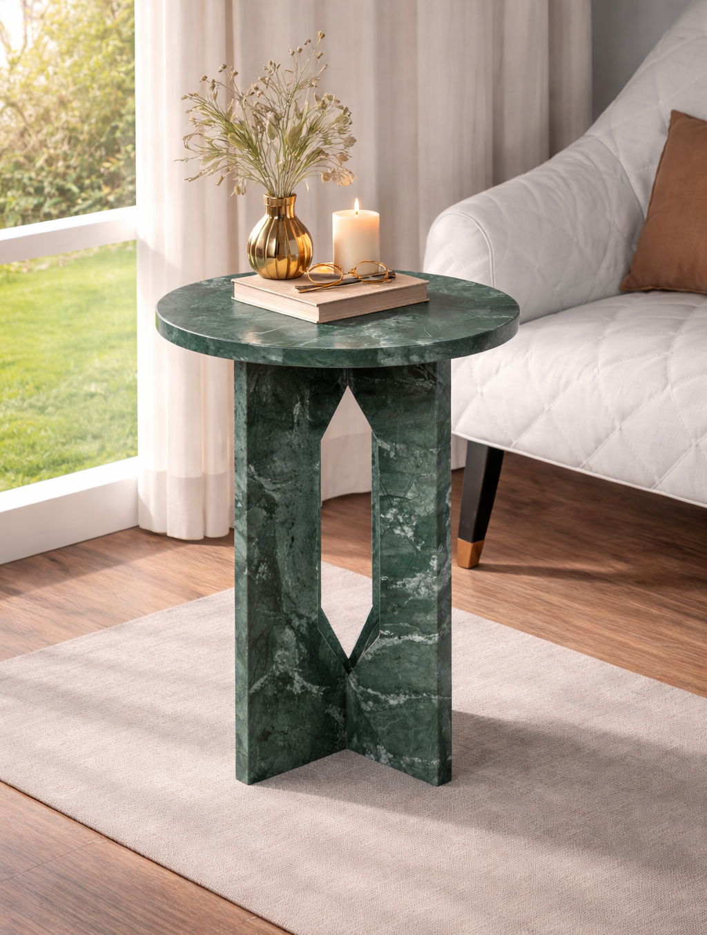 The Krypton Side Table stands out with its deep-toned stone surface and striking natural veining. Crafted from solid stone with a bold, architectural silhouette, it adds a powerful accent to modern and contemporary interiors.