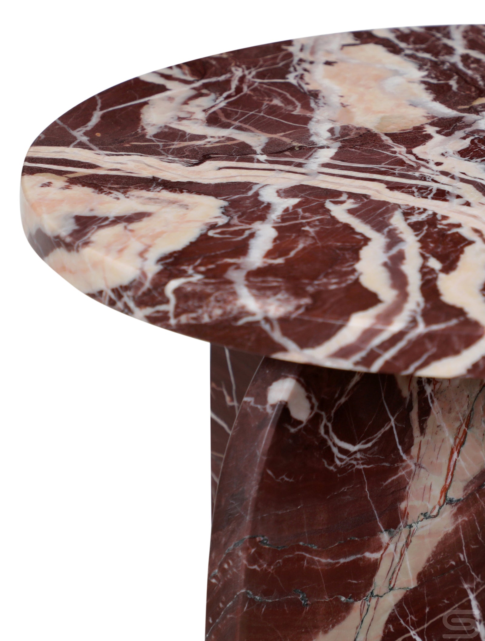 The Sienna Side Table features rich earthy stone tones with dramatic natural veining, creating a warm and luxurious presence. Crafted from solid stone with a bold sculptural form, it serves as a striking accent piece for contemporary and refined interiors.