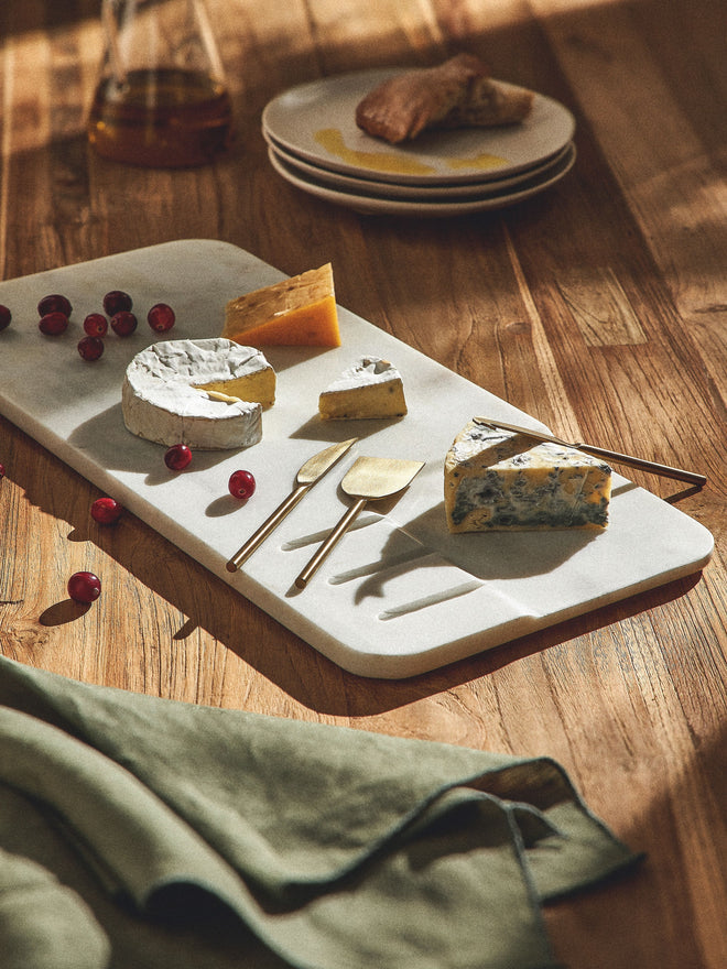 The Luna Board brings simple beauty and class to your table. Made from high-quality marble, it is strong, smooth, and elegant. Perfect for serving snacks, cheese, or desserts, this board adds a stylish touch to every occasion. Its natural marble pattern makes each piece unique and timeless — a great choice for any home.